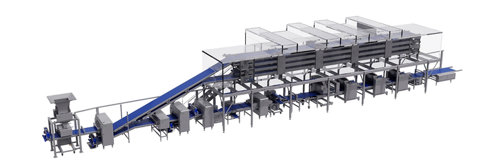 Designed around automation, flexibility, and food safety, this advanced pizza forming production line enables manufacturers to produce pizzas of multiple sizes and formats with impeccable stability at high speeds, making it an ideal choice for both large industrial plants and fast-growing commercial bakeries.