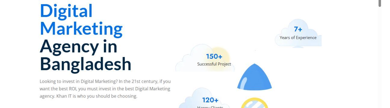 • About Me Khan IT is a Digital Marketing Agency in Bangladesh. We provide 360 digital marketing solution for small to large business owners around the world to rule on the web. We are successful in creating a bridge with the entrepreneur and their customers. Khan IT provides top quality and professional service to confirm your presence in the digital space. Our target is to ensure your maximum ROI (Return on Invest) from our assistance. We are the only digital marketing agency in Bangladesh to provide 360 digital marketing solutions. Thus we are considered a top digital marketing agency.